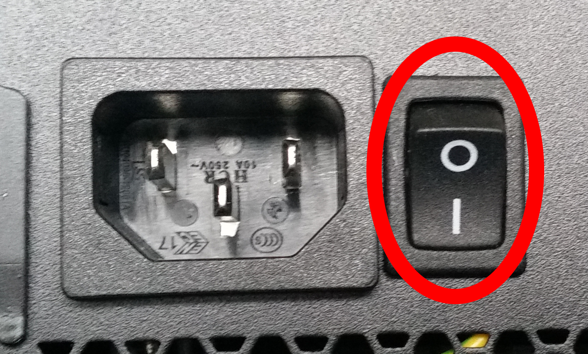 Um das Gerät herunter zu fahren, drücken sie den Ein/Ausschalter an der Vorderseite des Geräts. Es sollte sich binnen zwei Minuten selbstständig ausschalten.