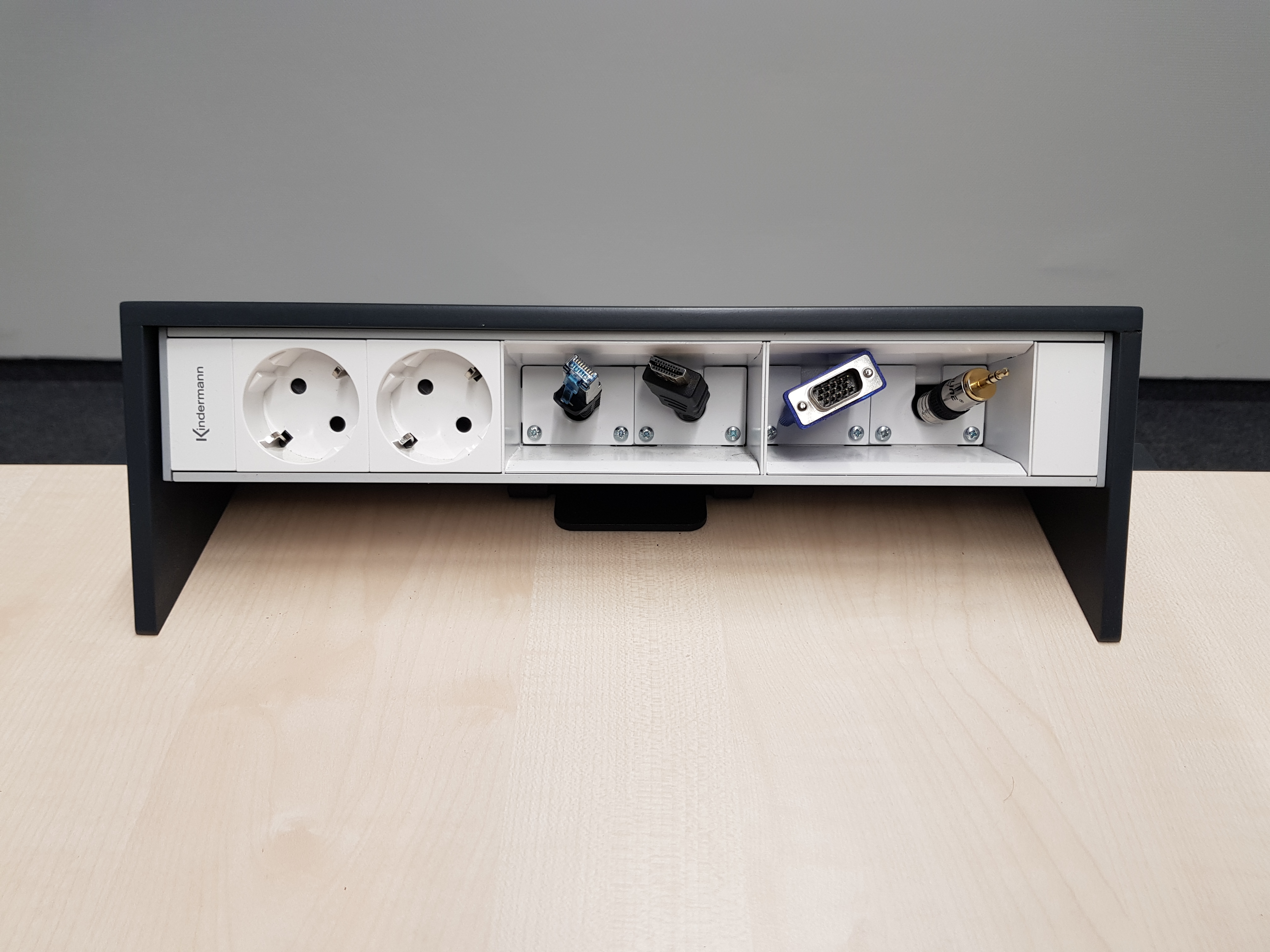 In den zentralen Seminarräumen und Pools des Instituts für Informatik befinden sich spezielle Pulte, um eigene Laptops mit dem Mediensystem des Raums (Beamer, Lautsprecher) zu verbinden. Im Folgenden wird deren Nutzung genauer erläutert.