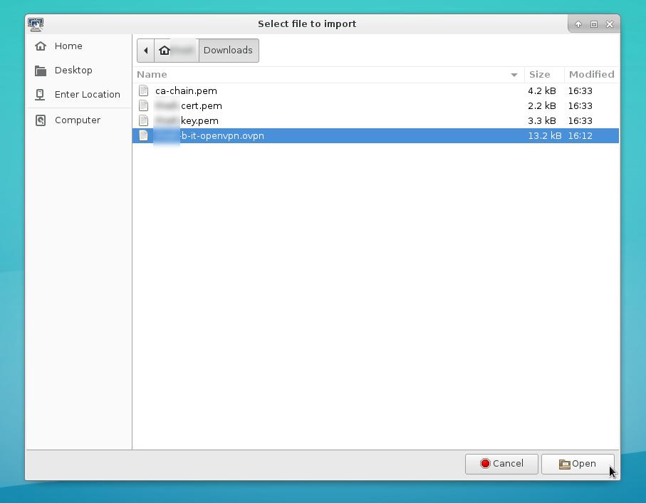 Wählen sie die Datei aus, die auf ”.ovpn” endet aus: