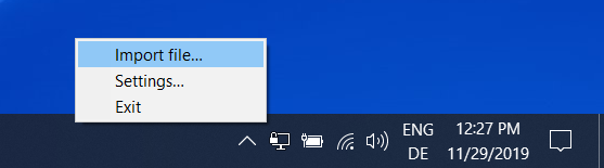 Suchen Sie in der Taskbar unten rechts das Icon der OpenVPN GUI, klicken Sie mit der rechten Maustaste darauf und wählen die Importfunktion aus: