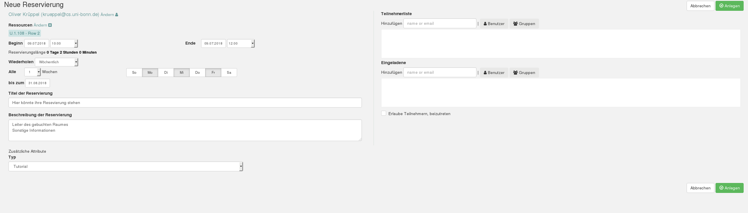The Institut of computer science is using the software “Booked Scheduler” for alle room reservations. All users will be assigned to a group.